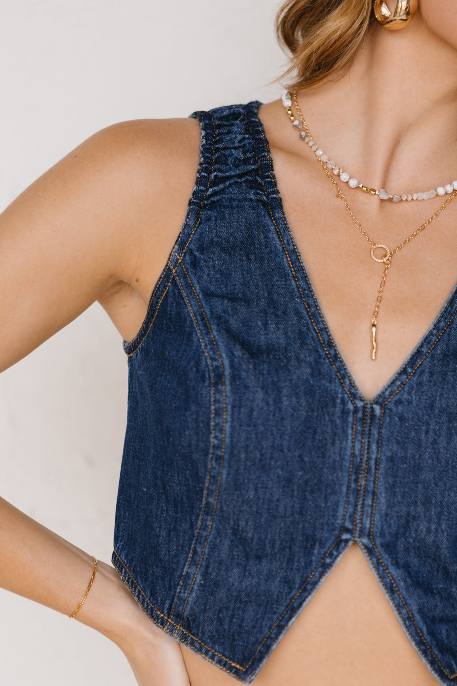 Dark wash denim top